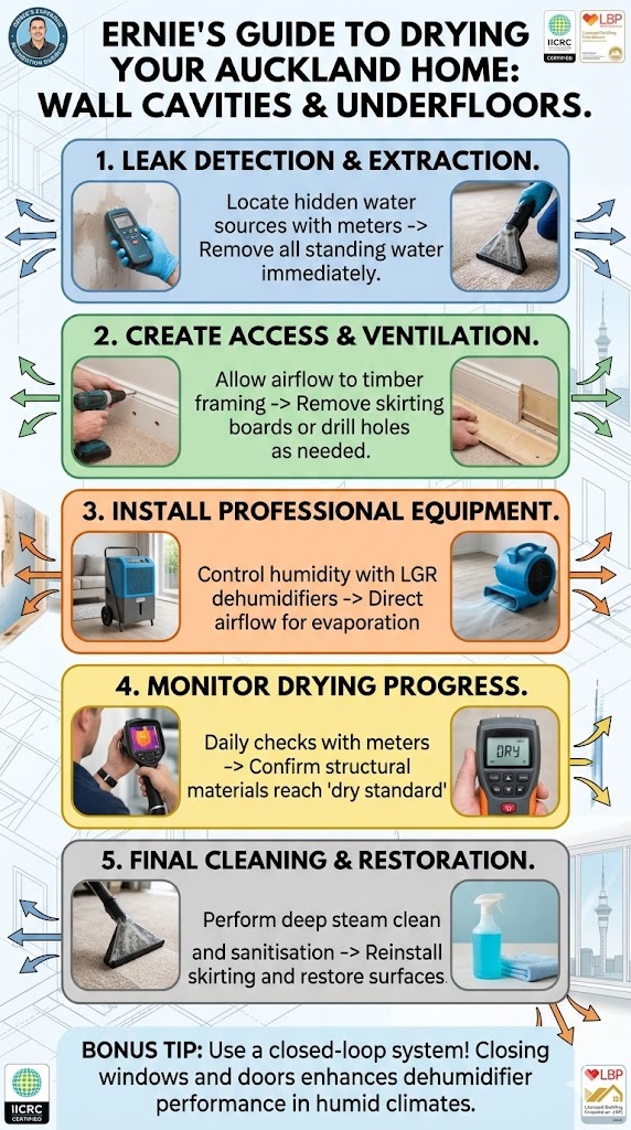 G’day, I’m Ernie. After years of crawling under Auckland bungalows and drying out flooded apartments, I’ve seen it all. When a leak happens, most folks mop the floor and think they’re sorted. But as a Licensed Building Practitioner, I know the real trouble hides where you can’t see it.