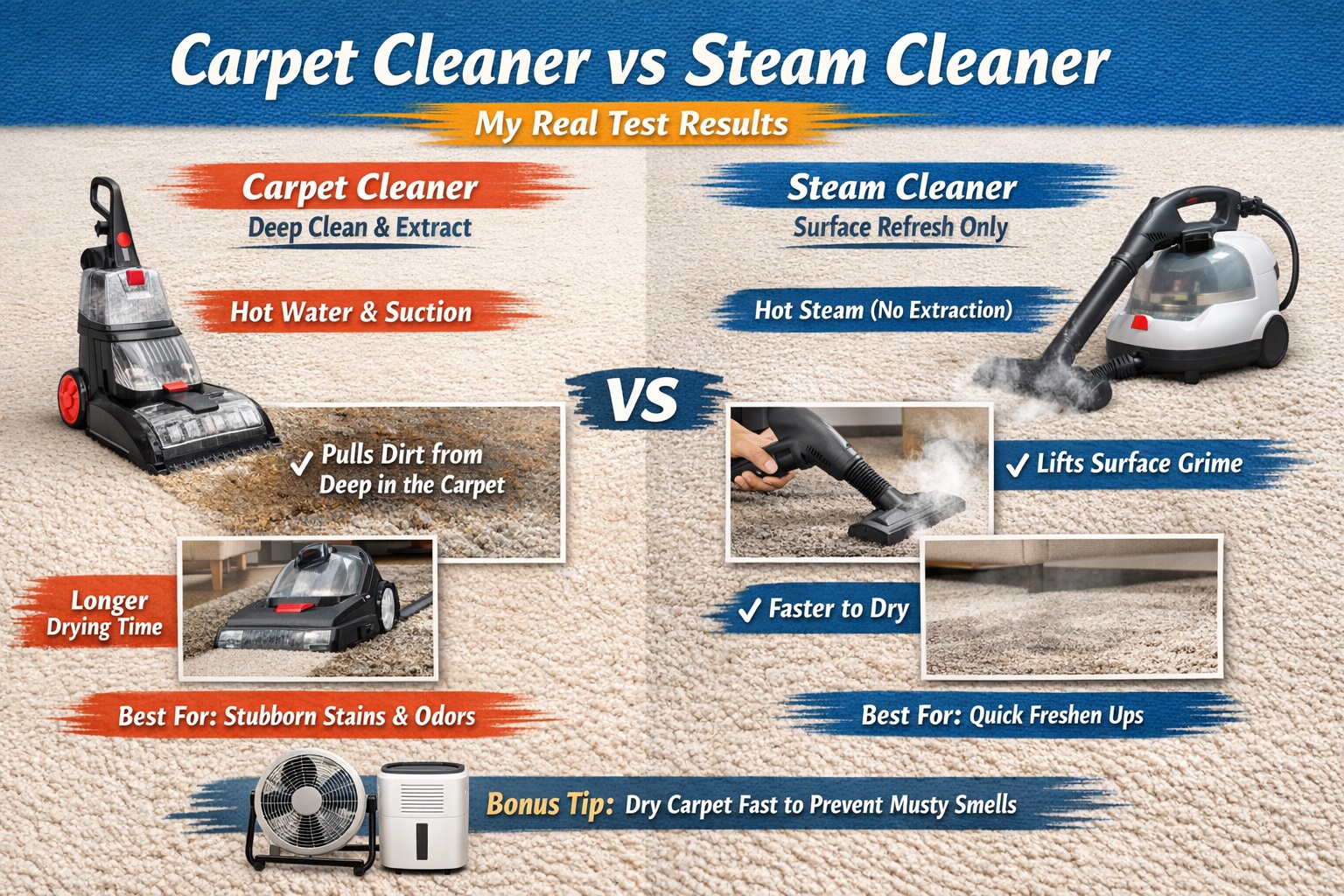I used to think “steam = deep clean.” Then I watched a steam cleaner make a carpet look fresher… while the dirt stayed in the pile like a sneaky roommate who never pays rent. After a lot of trial, error, and “why is it still damp?” moments, I learned the best tool depends on the problem you’re solving.